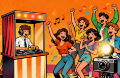 Animación con humor, DJ, photobooth y actividades interactivas.
